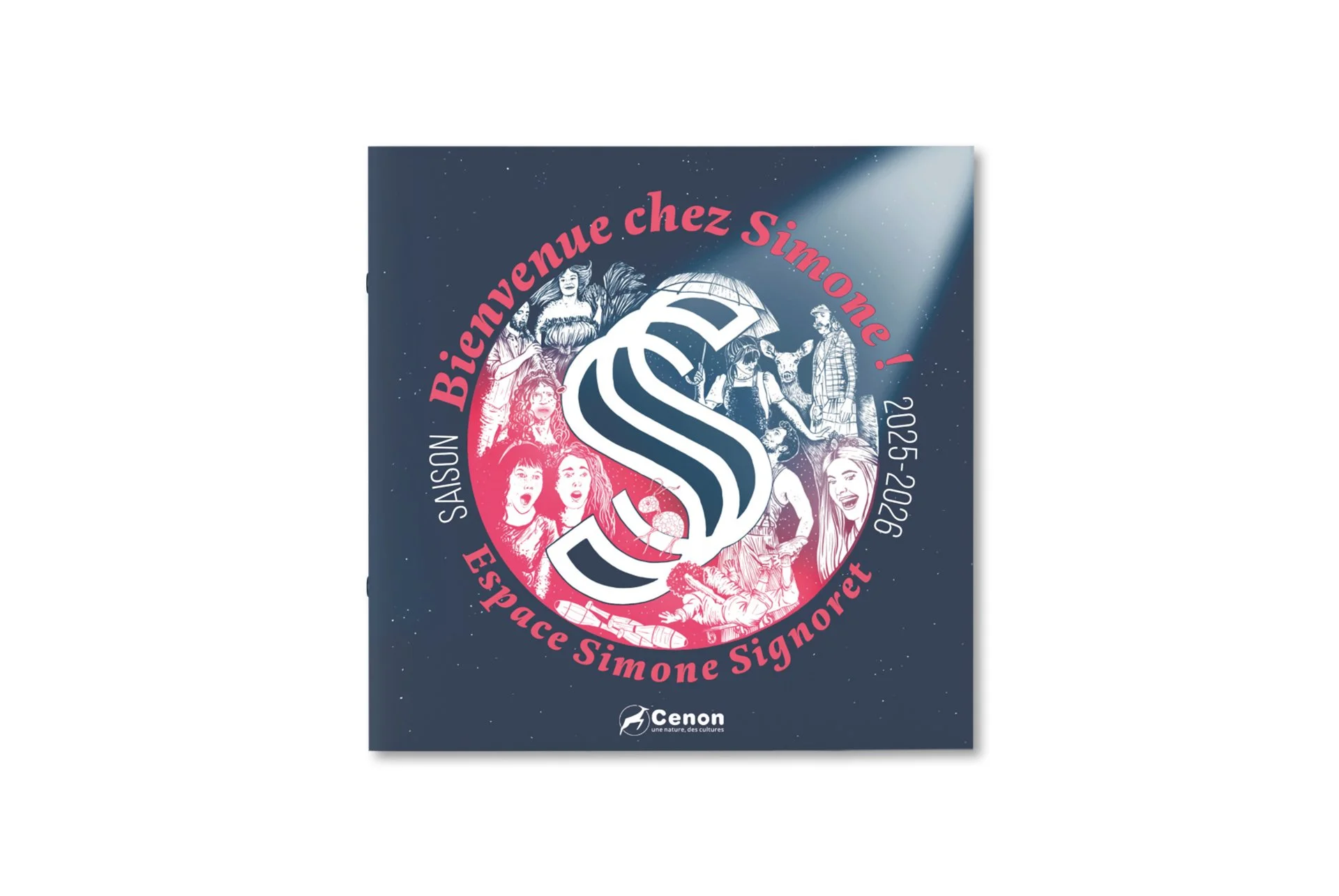 Réalisation de la communication visuelle de l’Espace Simone Signoret pour la saison 2025-2026. Déclinaison du visuel de la saison sur une brochure papier et web, affiches, kakemono, vitrophanie
